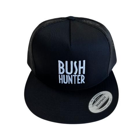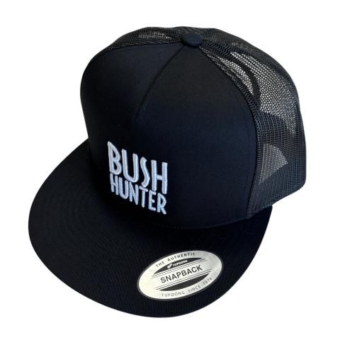 BUSH HUNTERのロゴが正面に3D刺繍されたメッシュキャップ。